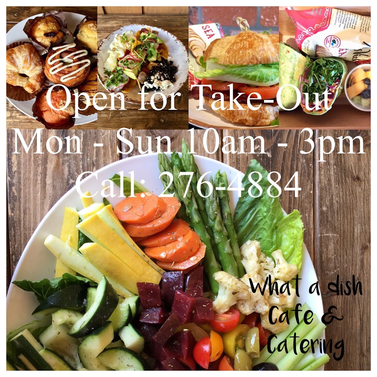 Cali Cobb salad: Mixed greens, avocado, boiled eggs, bacon, blue cheese. Sizes: small to large for 10-25 ppl.