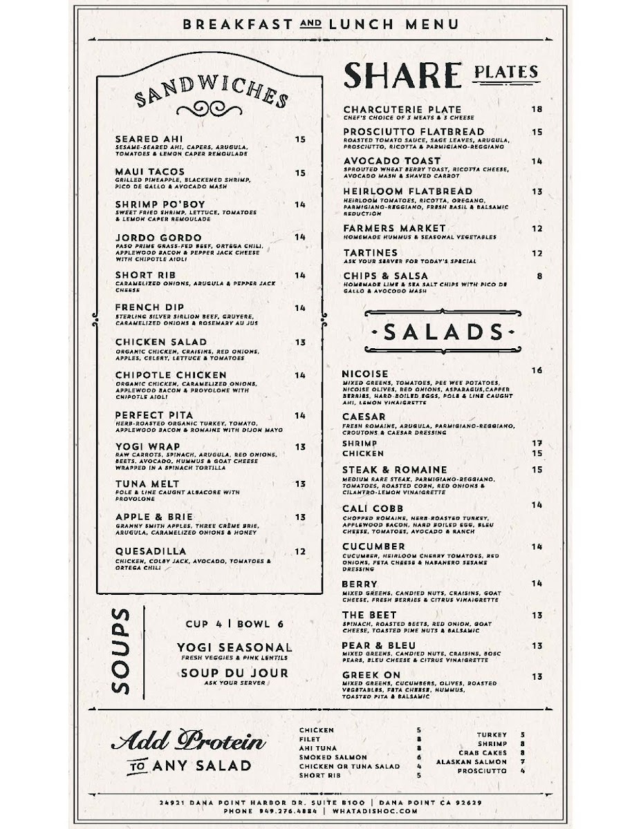 Mixed greens, tomatoes, pee-wee potatoes, nicoise olives, red onions, asparagus, hard-boiled eggs, wild ahi and lemon viniagrette